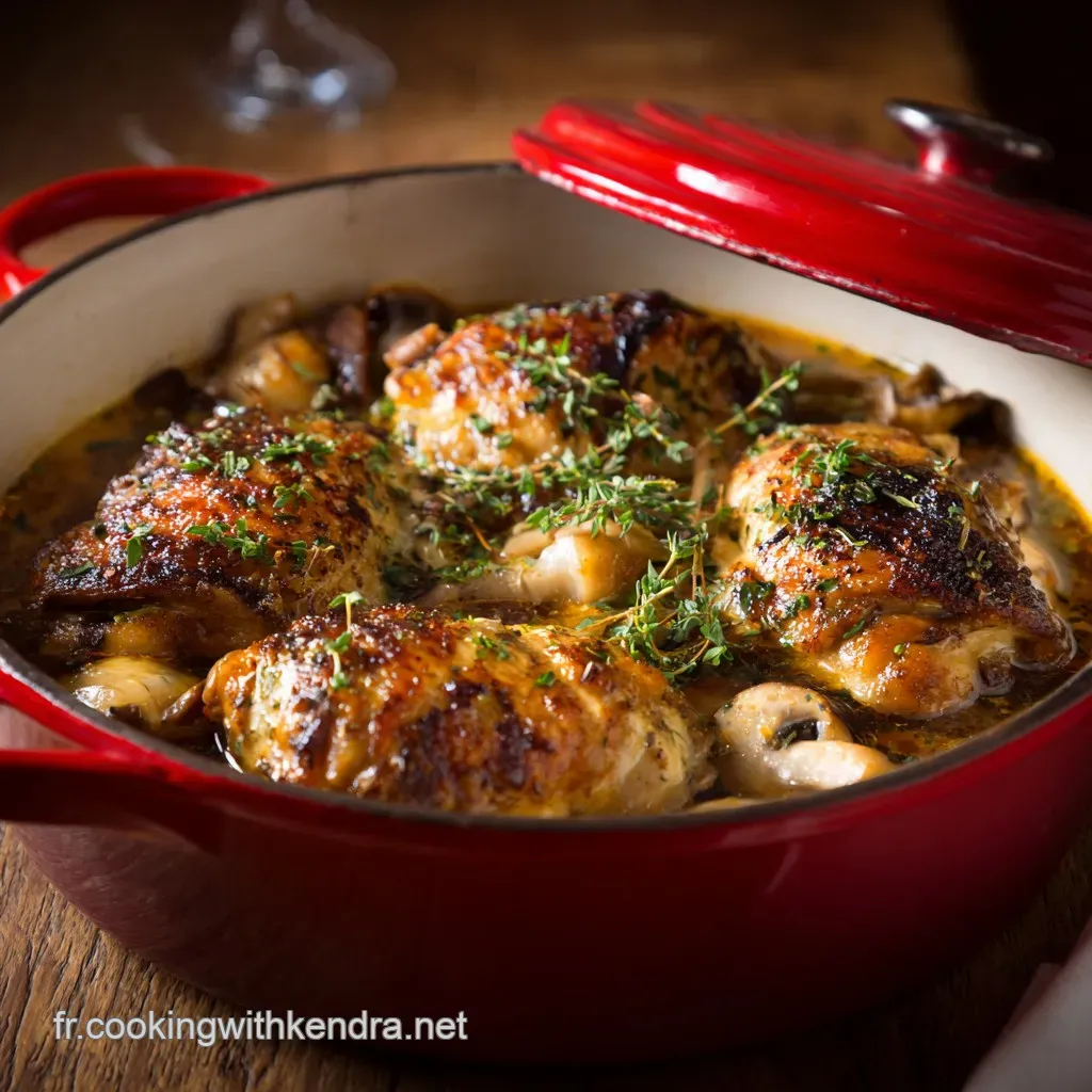 Quand vous saisissez le poulet (étape 1), le but est de créer une belle croûte dorée. C'est cette réaction de Maillard qui apporte le goût. Le poulet ne doit pas être cuit à cœur à ce stade ; il est simplement coloré.
