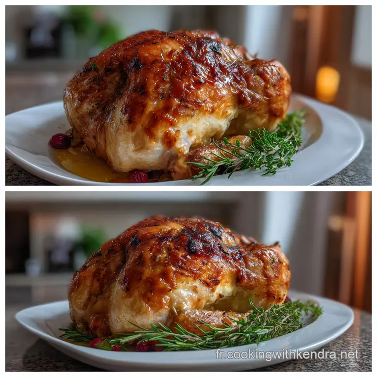 La présentation est la moitié du plaisir à Noël. Ne découpez pas la volaille en cuisine : apportez-la entière sur un grand plateau entourée de pommes rissolées et de bouquets de thym frais. Laissez-la reposer 30 minutes sous un papier aluminium lâche pour que les fibres se détendent. Si vous servez une sauce à côté, une Sauce Grand Veneur recette peut apporter une note poivrée qui contraste magnifiquement avec la farce sucrée salée.