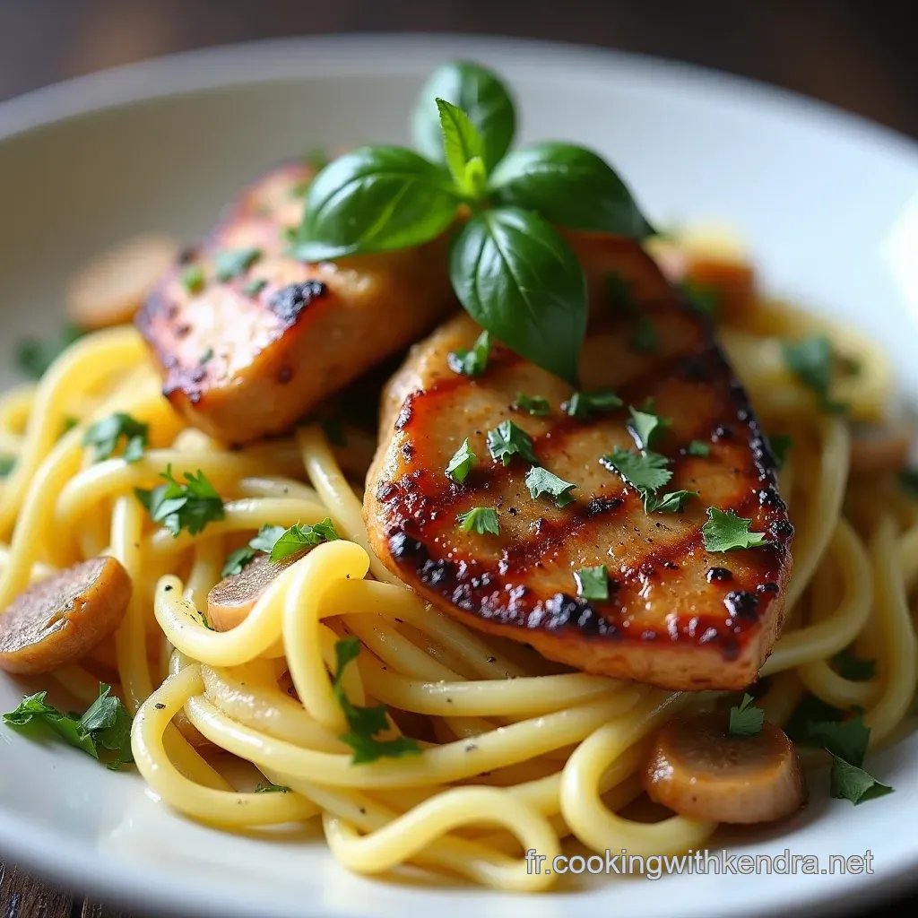 Le poulet, tendre et assaisonné, ajoute la substance nécessaire pour transformer ce plat en un repas complet et satisfaisant, idéal pour toutes vos recette pâtes chaudes .