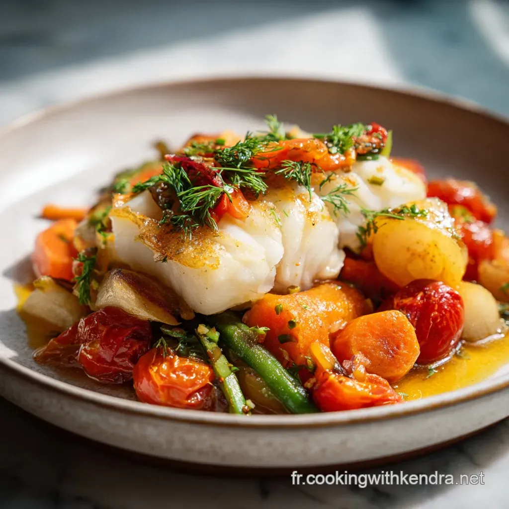 Remplace le cabillaud par des blocs de tofu ferme marinés au citron et au tamari, ou augmente simplement la quantité de légumes et ajoute quelques pignons de pin torréfiés pour le croquant et les protéines végétales.