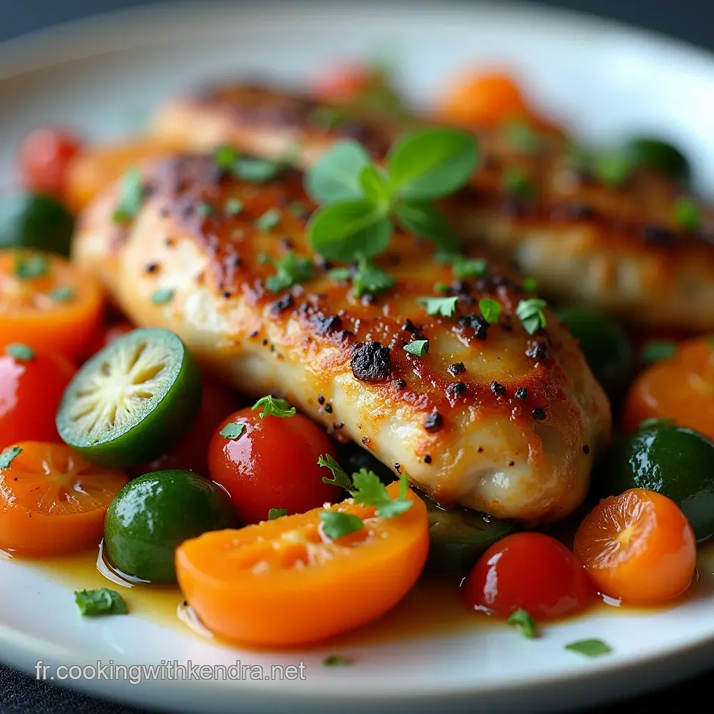 En environ 40 minutes top chrono, nous transformons des filets de poulet modestes et des légumes de saison en une Symphonie Colorée qui mérite son titre.